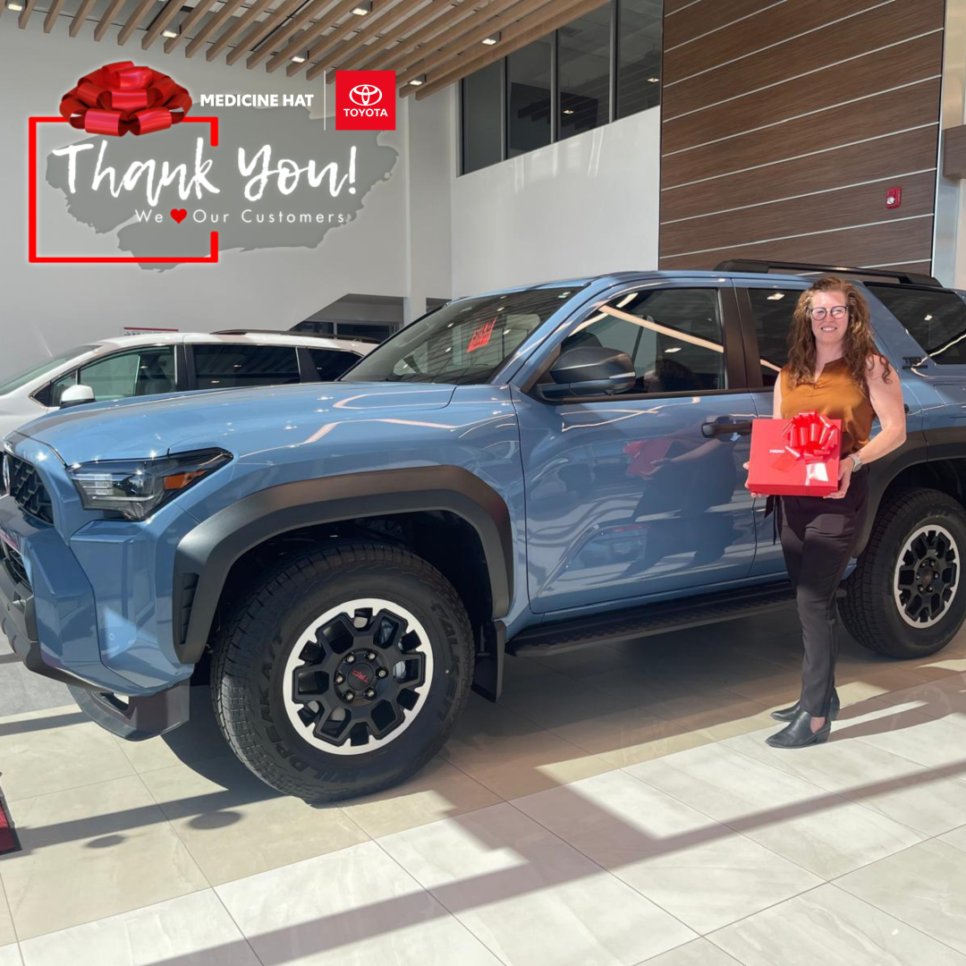 Tammy, thank you for trusting Medicine Hat Toyota to be part of your 4Runner journey. We know this SUV will bring you miles of adventures, lasting memories, and unbeatable capability wherever life takes you.